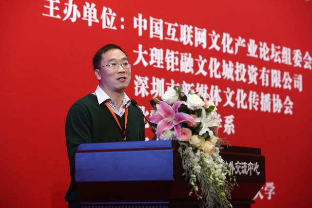 北京大学文化产业研究院副院长、哲学系教授陈少峰对互联网文化产业模式创新做了具体阐释。他分析了互联网文化产业的背景趋势,预测到2016年底,互联网文化产业将占到文化产业比重的70%,传统媒体占10%,艺术品与工艺美术、娱乐设备占10%,体验娱乐与设计占10%,,当下互联网一体化趋势加速,移动终端加速上网,以核心平台企业为主,互联网企业主导的并购与资源整合正在加速文化传媒企业两极分化。他还指出,移动互联网领域的商业模式及创新趋势是平台为王。传统文化产业搬到互联网上,将形成包括技术平台、零售平台、娱乐平台、资源整合平台、营销平台等在内的大平台与小平台并存的局面,专业垂直频道大行其道,O2O(线上统合线下)的模式更流行。