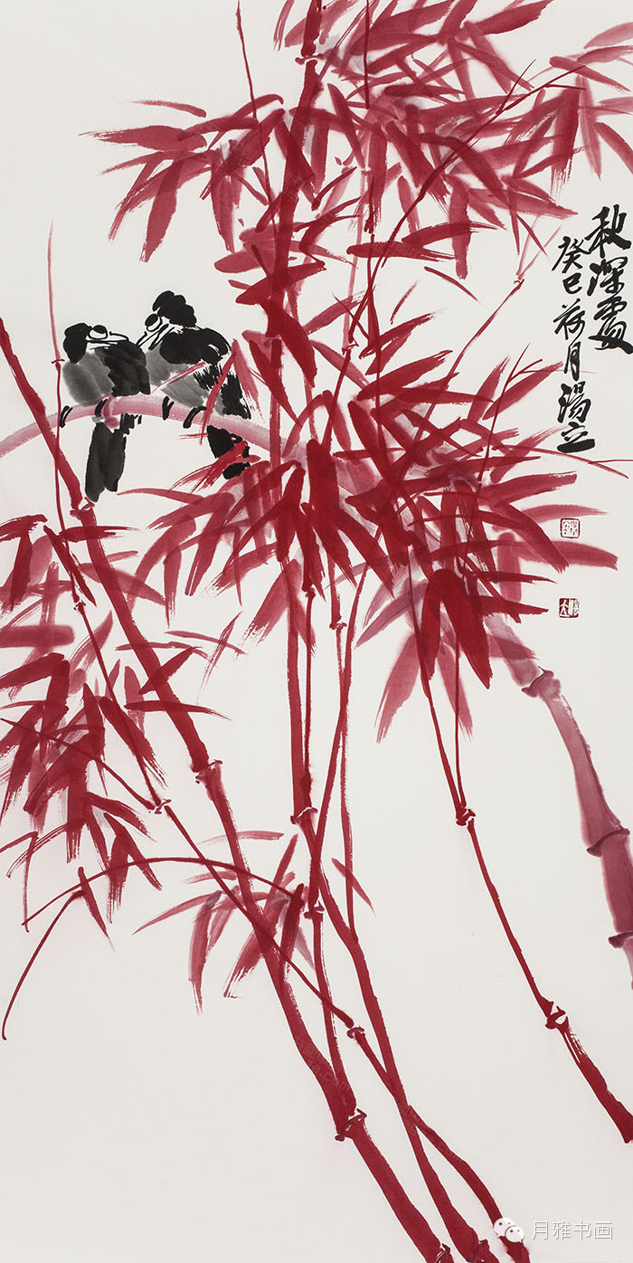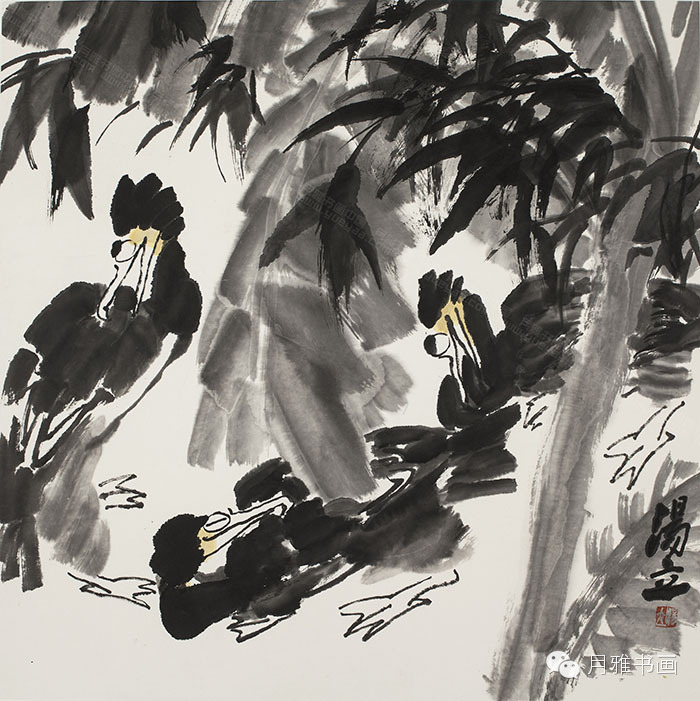 汤立得天独厚 ,他的大写意花鸟画深受父亲影响,品味纯正,格调高雅;他远师青藤、八大山人、缶翁、齐白石、张大千,博采众长,化合融铸,自成一格。他甘于寂寞,长期潜心于书法、文论以及东西方多个艺术门类的学习与研究,日积月累,终能以勃发的精猛之气,直扣艺术鹄的,破门而入,势不可挡。他的作品,或豪情奔放,雄奇瑰丽,别具堂皇气象;或潇洒旷逸,妙得天籁,尽显才情风流。在花鸟画中,汤立以牡丹、墨竹、红梅、兰花、鹰、鹭、鹤、鸡等见长。
