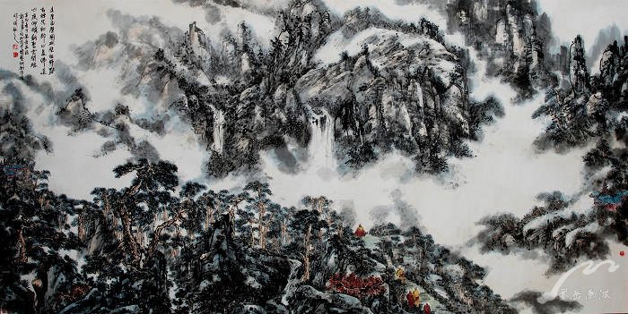 郭子昂多年来深入研究中国嵩岳文化,曾数十次赴嵩山写生,其嵩岳山水画作品,风格朴茂厚重、大气磅礴。尤其焦墨嵩岳写生,笔走龙蛇、自由灵动、温润妩媚。被诸多专家赞为上乘之作。上千件作品发表或参加国内外各种学术性展览,并获得诸多荣誉。先后出版各类专辑、画集、画册数十种。
