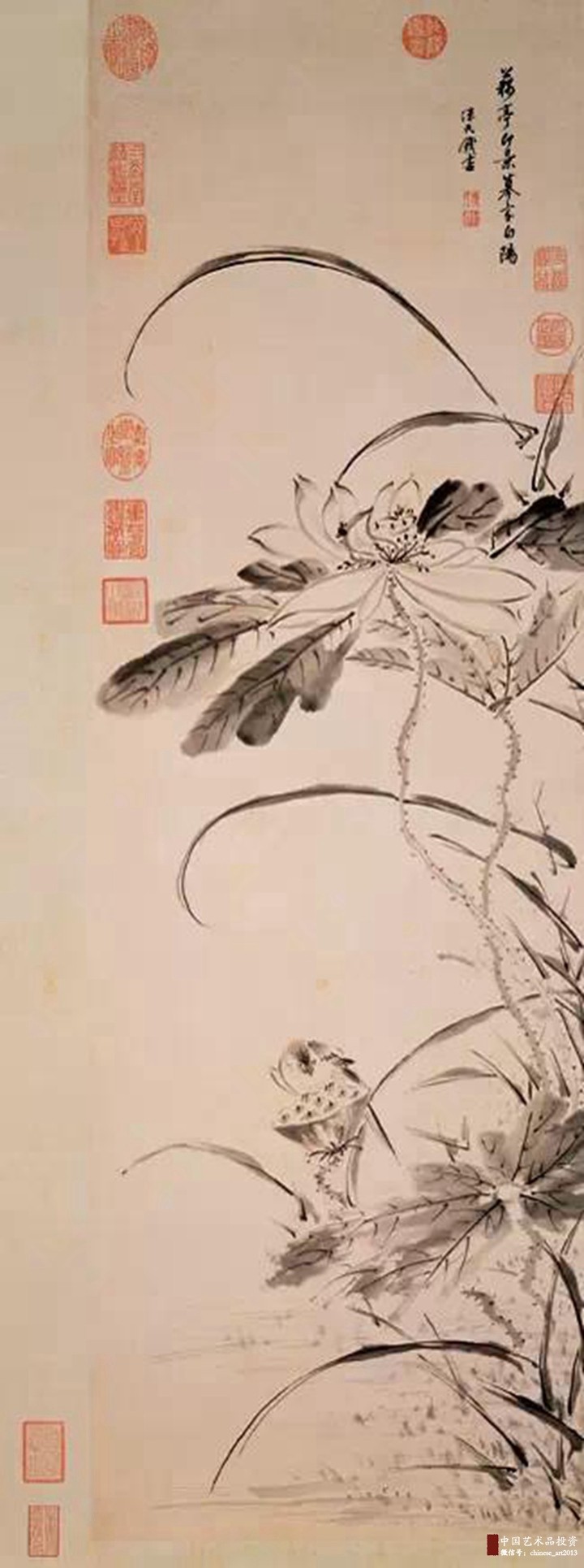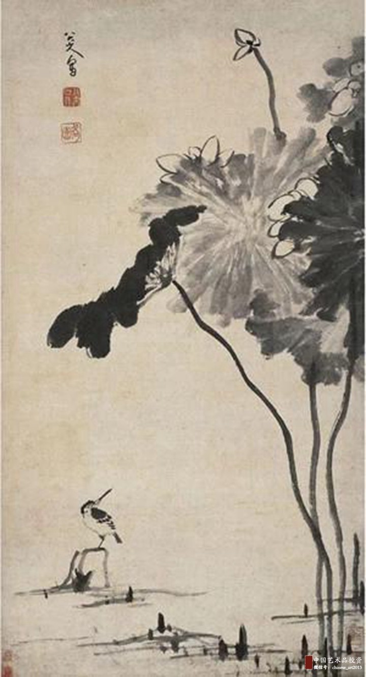 八大山人的荷花不是春色娇艳、欣欣向荣的鲜花,而是“溅泪”之墨花,是残叶败荷,一如他一向的画风,凄凉寂寞,冷意逼人。