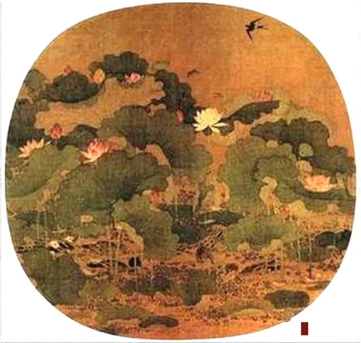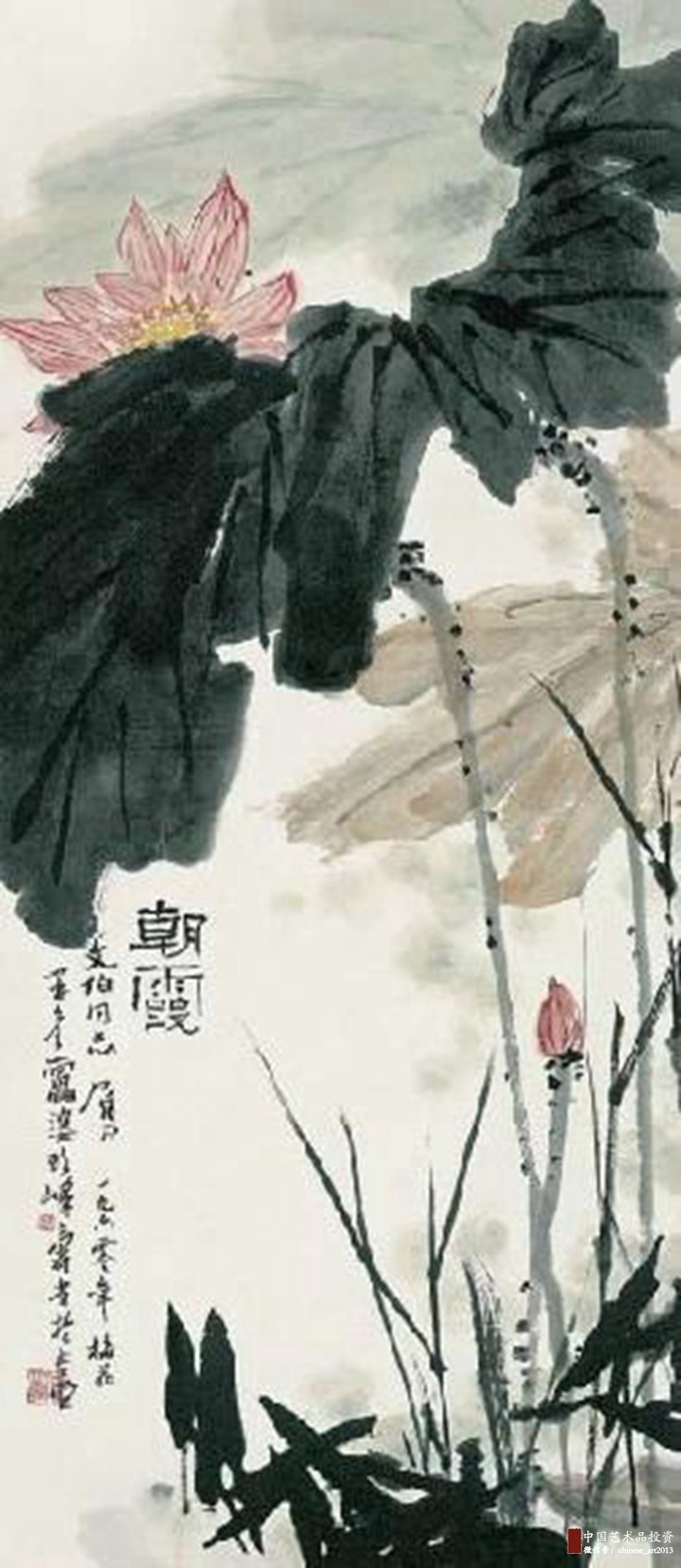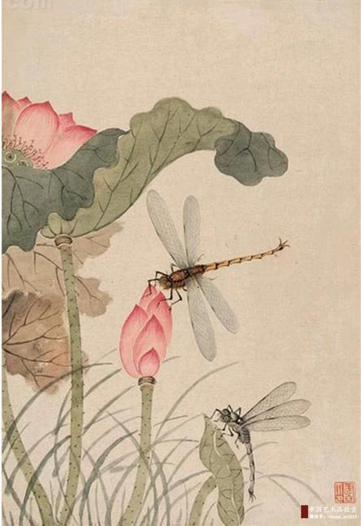 宋人《出水芙蓉》(旧题吴炳),善于选择生动的物像局部以“特写”式的手段使艺术形象更加突出,一朵荷花使人想到池中涟漪伴着荷塘月色的沁凉清香。