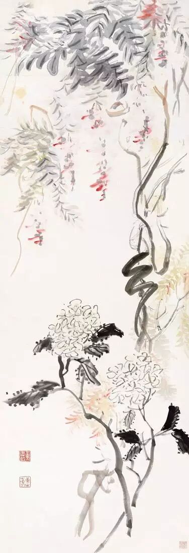 用水在墨更在笔,笔含多水称湿笔,笔含少水称渴笔。湿笔、渴笔,作画时都要用。都是在变化的。先是湿笔,用到后来成渴笔。但湿笔不可成墨猪,渴笔不可成枯木。垢道人下笔“润含春雨,干裂秋风”,非一时之功。要在运笔的徐疾、提按、顿挫、点垛、转折上多练习。