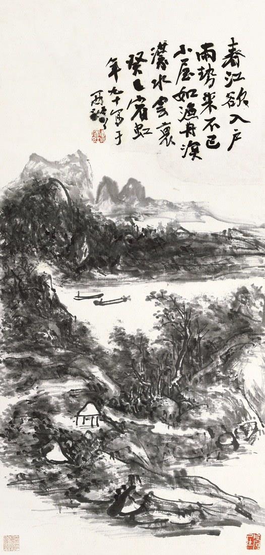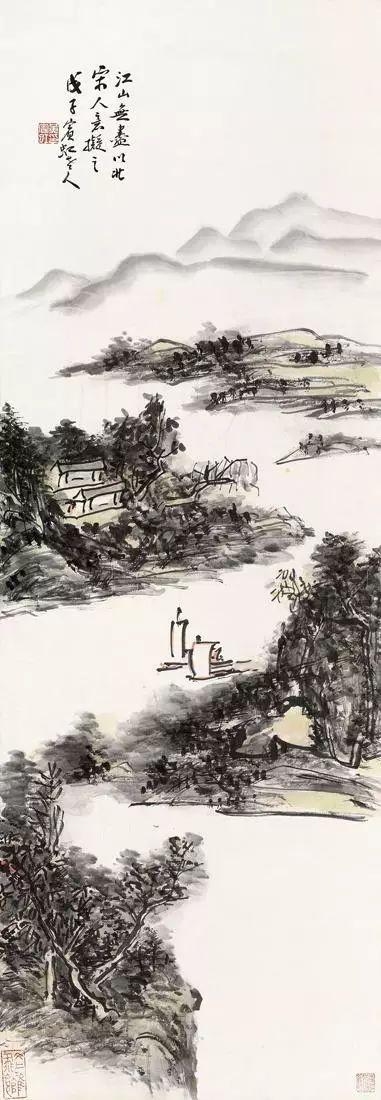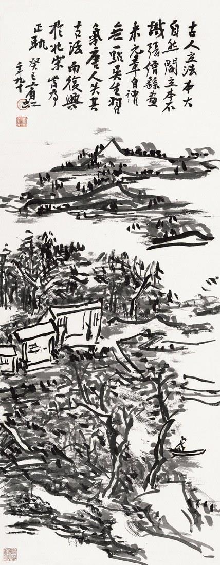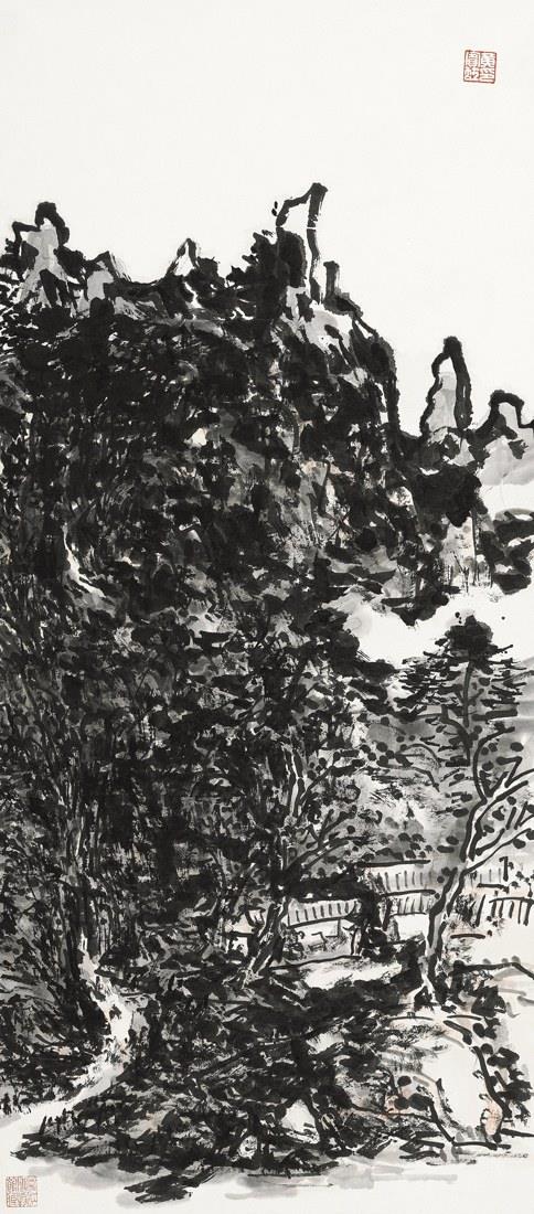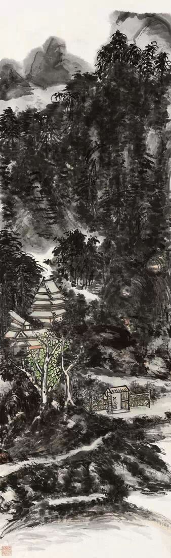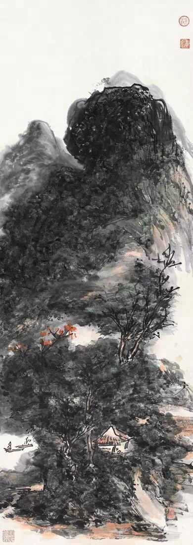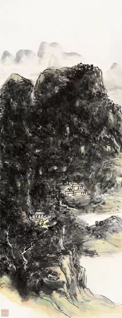 今人作画,不能食古而不化,要出人头地,还要别开生面。我用积墨,意在墨中求层次,表现山川浑然之气。有人既以为墨黑一团,非人家不解,恐我的功力未到之故。积墨作画,实画道中的一个难关,多加议论,道理自明。——1953年语。