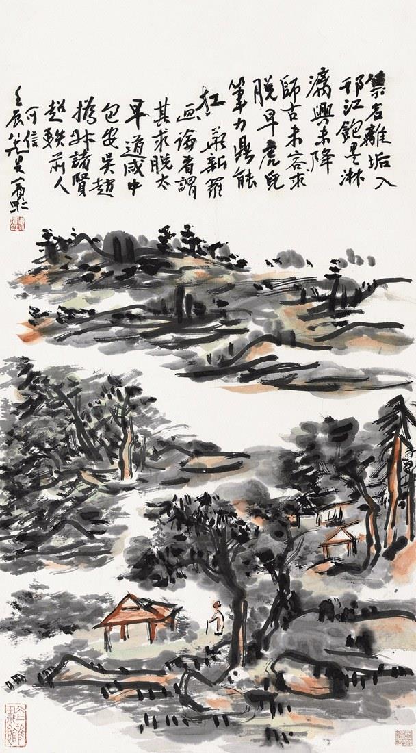 作画打点,应运用实中有虚法,才能显出灵空不刻板。——1948年语。见王伯敏编《黄宾虹画语录》