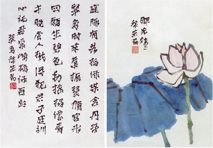 他在诗、书、印诸方面成绩卓然,尤以书画名世。他初学颜真卿,后宗北碑。他的的字结体奇崛、生拙古辣,有时看上去好像完全放弃了用笔,但别具情趣。他的字一直不为别人称道,但的确是格调高古。他的画一如其书,极重气韵,亦极讲究布局、章法、非常得势。他画松针、梅枝如作篆、隶,凝重刚健;画荷、菊一如大草,奔腾飞舞,处处渗透着金石、书法的功力。如果把他的绘画和书法对照起来看,就更能看出它们之间内在的联系。他的书和画相融相通,书中有画,画中有书,就是他的特征。先生中、晚期画发一变,以简、质、雅、重取胜,比之画风,有明显不同。中、晚期画作,奋发为雄的气概似呼减弱了,代之以古朴凝练。黄宾虹老人论先生画:“以书法入画,其晚年所作画,萧疏淡远,虽寥寥几笔,而气韵生动,乃八大山人、徐青藤、倪迂一派风格。为我所拜倒。”二十年代出版的《中国现代金石书画家小传》第一集,评述徐生翁先生:“大江南北,佥称先生所作古木、幽花,自成馨逸,金石书画,横极千秋,前无古人,后无来者。徐生翁先生布衣终身,淡泊自甘,对自己热爱的书画艺术却孜孜以求,终其一生,永不停息。他那种攀“高”求“变”的精神是学者不可多得的宝贵遗产。先生在1964年1月临终前数日,竟闭门烧毁不少作品,在老人的心灵中,他唯一的冀求,就是要将最完美的艺术品,献给社会和人民。