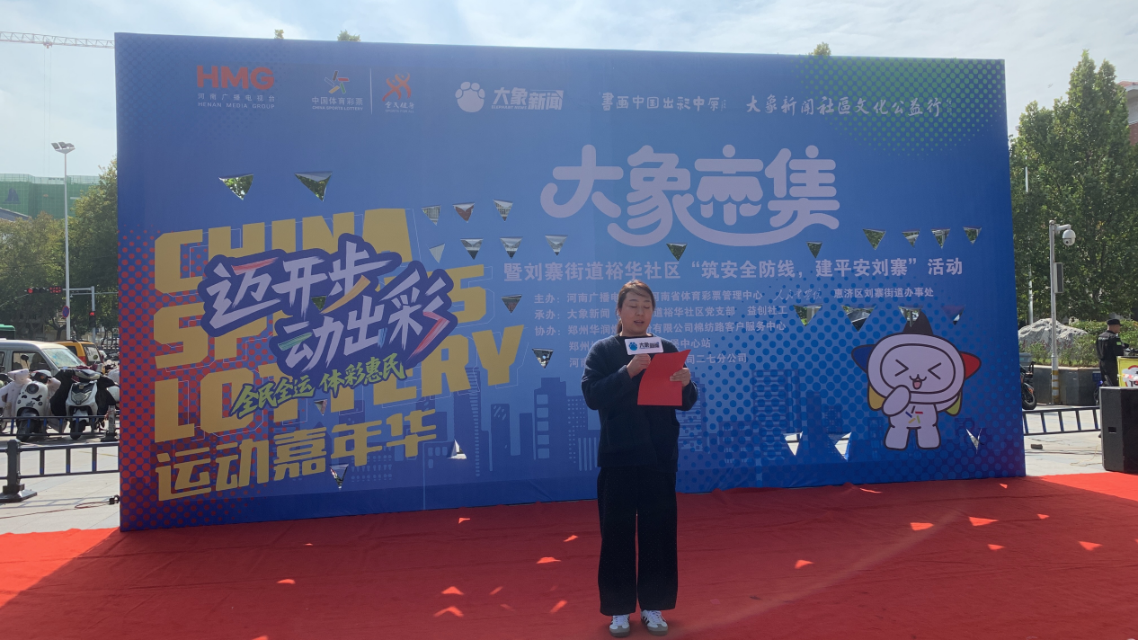 2025年10月18日, 由河南广播电视台、河南省体育彩票管理中心及郑州市惠济区刘寨街道办事处联合主办,大象新闻、刘寨街道裕华社区党支部及益创社工承办,郑州华润燃气股份有限公司棉纺路客户服务中心、郑州地铁2号线南五里堡中心站、埃玛舞蹈学校及河南升龙物业管理有限公司二七分公司协办的“迈开步 动出彩”运动嘉年华暨刘寨街道裕华社区“筑安全防线,建平安刘寨”活动,在郑州惠济区盛大开启。这场集运动竞技、文化展演、安全科普于一体的社区盛会,吸引了千余名居民热情参与,成为秋日里一道活力四射的风景线。