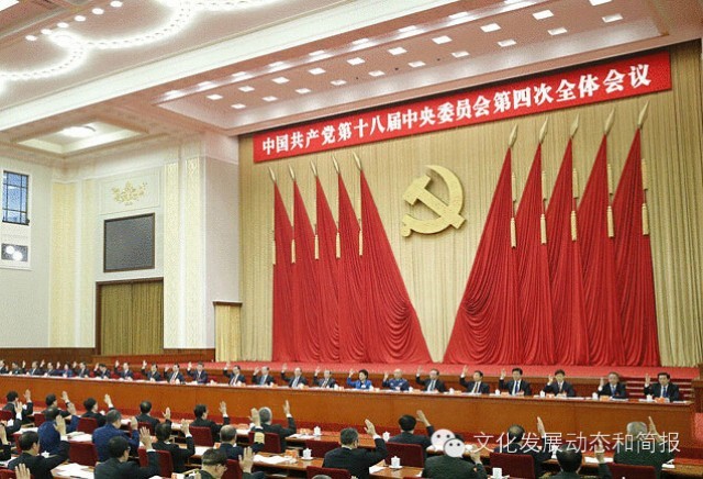 中共十八届四中全会审议通过的《中共中央关于全面推进依法治国若干重大问题的决定》28日全文发布。《决定》指出,建立健全坚持社会主义先进文化前进方向、遵循文化发展规律、有利于激发文化创造活力、保障人民基本文化权益的文化法律制度。制定公共文化服务保障法,促进基本公共文化服务标准化、均等化。制定文化产业促进法,把行之有效的文化经济政策法定化,健全促进社会效益和经济效益有机统一的制度规范。(来源:中国网10月28日讯)