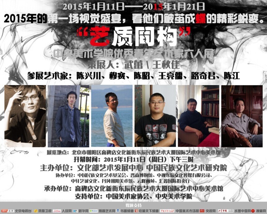 “艺质同构”——中央美术学院优秀青年艺术家六人展将于2015年1月11日(周日)下午三时在高碑店新文化街东辰民族艺术大厦国际艺术中心美术馆举办开幕式!届时诚邀各位领导及朋友在百忙之中前来参加此次画展,我们恭候您的光临!