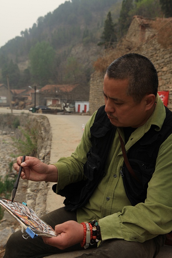 观王晓辉的山水画作品,画中常见高士悠游山水之间;旅人穿行树木山林之中;亭台楼阁时时隐现于远山近水之间,传统山水所追求与营造的“可卧、可居、可游”之境,在王晓辉的作品中进行了适度的体现与再造。其作品所要追求的“畅神”之境,经由传统的高士、旅人、亭台楼阁等形象进行了再现,但其画面的表现方法已与传统的山水拉开距离、体现出不同的画面塑造方法与美学观点。