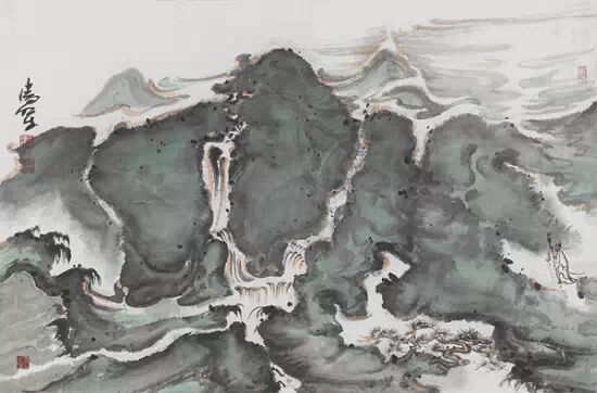 与其人物画创作相比,王晓辉的大写意山水作品愈显传统与古典,其创作非单纯对现实风景的描绘与摹写,而是仍然秉承文人寄情山水的精神追求,讲究“以形写神、形神兼备”,以抒发胸中意气,将自己与山水融为一体,而达“畅神”的山水画最高境界追求。