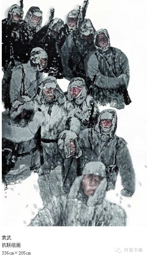 袁武的《抗联战士》,与之前批判革命战争残酷论不同,找到新的历史界限,重新认识了这些问题,把革命历史和革命烈士放在雪地里边,捕捉了抗联战士牺牲的镜头,不仅是形式解放,也有艺术思想和理论上的解放。