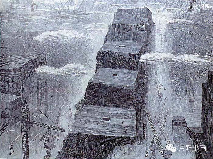 来自湖北的王晓愚的《世纪三峡》通过木刻手段描绘三峡工程建设细节,线条极其精细繁复。