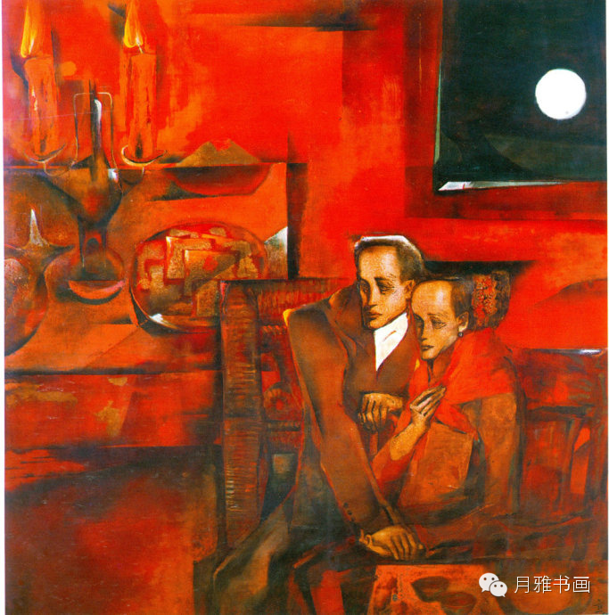 陈立德的《皓月红烛》获得中国当代美术史上第一枚全国美展漆画金奖,作者巧妙地利用磨漆效果,体现黑红交错的光的晃动感,以及背对月亮的逆光,渲染出特有的气氛和情绪。