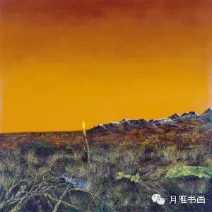 李永清的《永恒的记忆》,展示了一个有残碑卧地、岩石为碑的墓地,更有一枝插在石碑前方的木棍刺破地平线,树梢渐次染出鲜亮的黄色,直指红色苍穹。