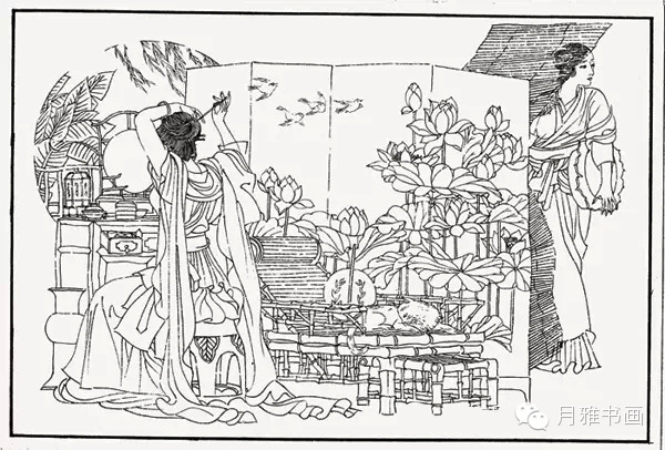 郑力的《书香门第》以宋人工笔画的形式描绘了富贵悠闲的江南书斋,巧妙调用了众多中国画元素,整个画面不着一人,而闲逸之气满溢;