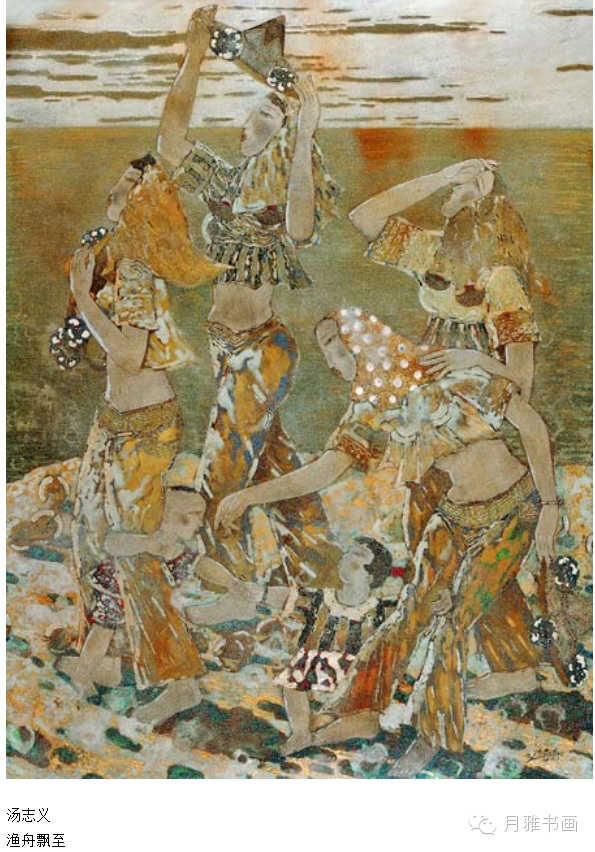 王绍波《渔歌》,既具油画的凝重深厚,又兼有中国画笔力神韵而不失水彩艺术表现的新路。陆庆龙的《兄弟》,整个画面用笔豪迈奔放,构图松紧与节奏相得益彰,虽是水粉画却有油画的厚重感。